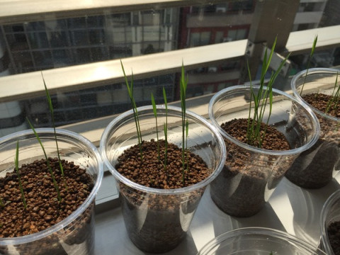 東京港区「ほぼ日」オフィスの窓際で栽培している稲ですがこの週末、こんなにも成長してました!