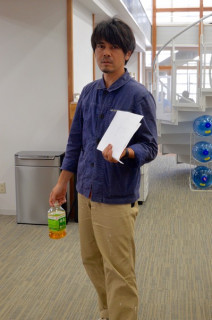 奥野、常人に戻る 先週の土曜日に レ・ロマネスクさんのライブの東京公演が行われました。 そこにゲストギタリストとして弊社の (大阪公演のようすはこちらをどうぞ) レ・ロマネスクさんのステージでギターを演奏すると決まってからこの方、おっくんはずっとどこか上の空状態だったので、ようやく通常運転の彼を本日我々は見ることができたのであります。 「そうですね、これからはもう、 きっちりやっていかないと」 一瞬でも、ギタリストになった感想は? と訊くと 「いい思い出になりました」 とのこと。 レ・ロマネスクさん、大阪&東京公演においでになったみなさま、ありがとうございました。 おっくん、たまった仕事をがんばれー。 2016/05/23 14:55 |