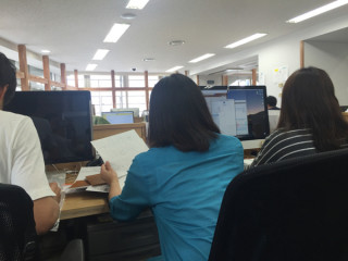 何をしているのかというと、新入社員のみなさんの顔が見えるとこで、顔アイコンを描いているのでした。