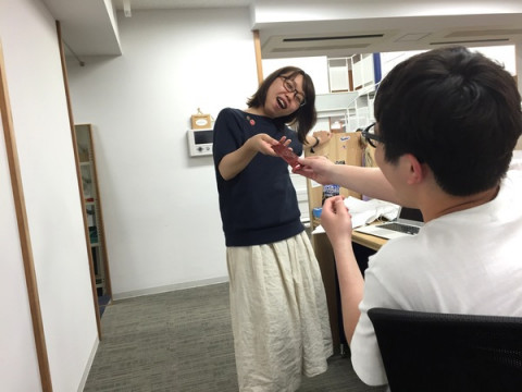 プレゼント 私の席に、なんだかえらそうな態度の なんだろう。 なんでこんな態度なんだろう。 ‥‥というか、理由はわかっています。 今日は 誕生日がゆえにこのような態度をとっているのです。 「みんな、スギモトの誕生日ですよ。 なにかプレゼントを!」 というと、 「ひぇーー、ごめんなさい、 いいんです。いいんです」 と、遠慮する マツザキからはお菓子が、 (丁寧にのしまで付けていました) 私はスギモトが久々に読みたいと言っていた漫画をあげました。 私も好きな漫画です。 でもamazonに注文するときに間違えて、3巻だけ新装版という、意味不明なことをしてしまいました。 2016/05/25 20:46 |