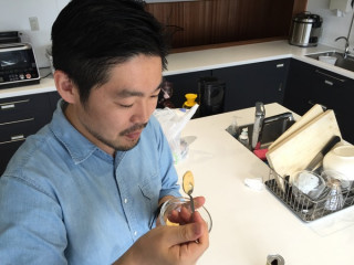 カレーマヨ実験。 ただいま毎日更新の、 「マンハッタンにカレーの恩返しをかけちゃいましょ!」。 ほがらかのジョージさんに愛するニューヨークについてたっぷり語っていただいています。 中継では、 すると中継後、なんと、ニューヨーク在住の女性のかたからこんなメールが。 (カレーの恩返しも帰国時に買って、愛用してくださっているとか!) ーーーーーーーーーーーーーーーー 中継にもちょっと出ていたSir Kensington'sのマヨネーズ! 酸っぱいだけじゃなく、ちゃんと卵の味のする凄く美味しいマヨネーズです。 私は子供の頃からマヨネーズが苦手だったのですが、Sir Kensington'sのマヨネーズが私のマヨネーズ嫌いを克服させてくれました。 そこでひとつ、おすすめさせてください。 このマヨネーズに「恩返し」を混ぜてカレーマヨにして、つけて食べたらスッッッッッッゴい美味しいですよ。 家では最近フレンチフライにはケチャップではなく、カレーマヨが恒例となっております。 ポテトフライはもちろん、他の揚げ物(唐揚げ、トンカツ)とも相性抜群です。 (トミ子) ーーーーーーーーーーーーーーーー うわー、おいしそう! ということで、さっそく Sir Kensington'sのスリラチャマヨネーズに、カレーの恩返しを入れて、スプーンでまぜれば、できあがり。 近くのスーパーで買ってきた、揚げ物(コロッケ)につけて、ぱくり‥‥と! 「おぉぉぉぉ、おいしい!」 おお、ほんと? 「んんん、おいしい! ぼくの大好きなカレーコロッケとクリームコロッケがいっしょになったような感じですよ!」 おお、そうなんだ。 じゃあぼくもひとつ‥‥うわぁぁ、おいしい! カレーマヨ、これ、おいしい! 「これはどんどん食べちゃいますね」 ほんとにそう。ぐんぐんいけちゃう。 けっこうたっぷり入れてもいいね。 「うん、香り高くておいしいですよ」 ということでカレーマヨ実験、大成功! トミ子さん、ありがとうございます! よければみなさんもやってみてくださいね〜〜!! 2016/05/27 16:48 |