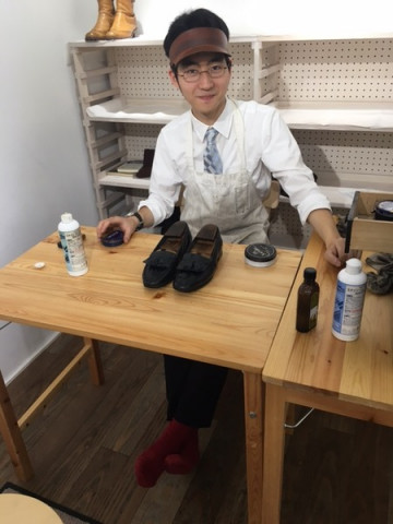 山邊くんはまず自分の靴を磨いていました。