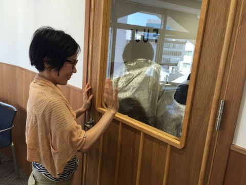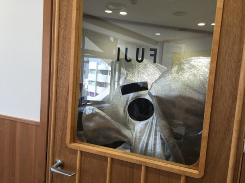 (ミーティングルームの外から なにかがあたる音)