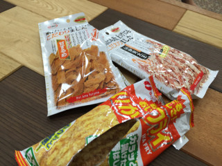 鷹揚な社長と、イカ試食の会。 大広間で、 「ドコノコ」の話はするとすぐ顔がにこにこしちゃっていいですね。 (私も現在トライアルに参加していますが、 すでにおなじみになってきた 犬とねこが次々にでてくるので、 寝る前にかならずながめて うっとりしています。 犬もねこも一緒に暮らしてないけど かなりの量の犬猫写真をもっているので、 それをちびちびアップして みんなに「いいね!」をもらって すっごくうれしくなったりもします。) ひとしきり、みんなでグッズをみてにこにこしてたら、いつのまに、 そうしたら、 袋ごと! いいんですか? 「もちろん。 オレは鷹揚だからね。」 いただきます! 私たちには昔からのおなじみ、 「ピリッと甘するめ」! そして、 「イカフライ」に 「イカ天大王」。 どれもおいしゅうございますが、やはり、なじみのある 「ピリッと甘するめ」はおいしいですね。 じゅわっと甘いところがたまらんっす。 2016/06/02 15:54 |