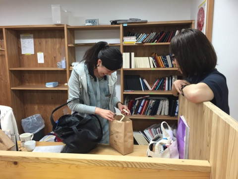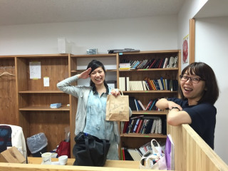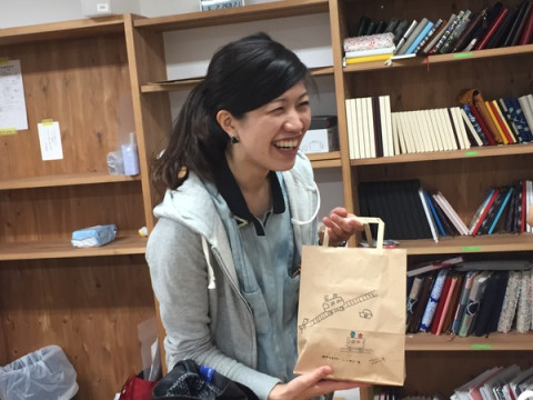 に、がんばれ〜! の気持ちをこめて差し入れのおやつ(手描きの袋付き)を渡しました。