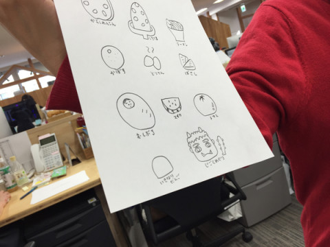 しろくま、かぼす、馬刺し、むしぶろ、鬼などなど、さらさらーっと描きましたけど、九州出身の松崎に、