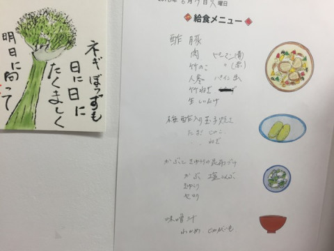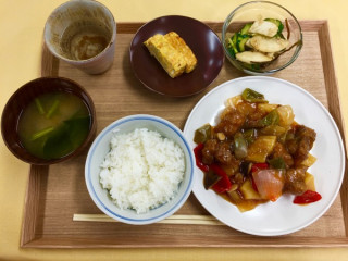 酢豚 もう日が暮れてしまいましたが、今日の給食は「酢豚」でした。 パインと、赤青ピーマンが入った酢豚です。 あまくてたいへんおいしかったです。 むろん、たけのこ&しいたけも入っており歯ごたえバリエーションがさすがでした。 「梅酢入り玉子焼き」もじゃこ、ねぎが巻いてあって、噛めば噛むほどの悶絶味でした。 でね、今日は配膳当番がじょうずだったのかもしれないけど、ごはんがふわっと盛りつけてあってすごくよかったんです。 「その食べものをまとう空気も 味のうちに入る」 と、わたしゃあつねづね思っているのですが、今日のごはんは、よかったなぁ。 これからごはんは 「ふわっと」よそうことを心に誓ったわたくしでございました。 2016/06/07 19:51 |