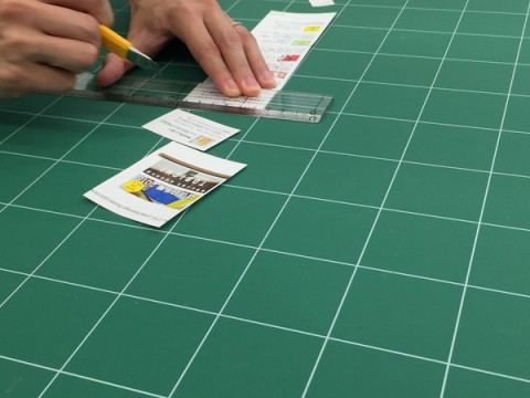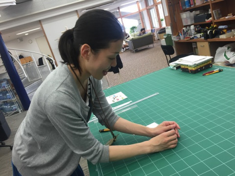 揃えてトントン きょうのゴーストカッターは経理の 作業台のうしろに座っていた、という理由だけで、つい甘えてしまいました。 「だいたいでいいよ」と伝えたのですが、几帳面な 直線はあくまでまっすぐに、角はきちんと90度に。 最後は、紙の両端を手で揃えてトントンときれいに整えて、はい、と手渡してくれました。 揃えてトントン! 私とはやはり違う。 こういうふうに何でもきちんとやるのは見ていてとても気持ちがいいですね。 たった5分のあいだに、 2016/06/08 16:35 |