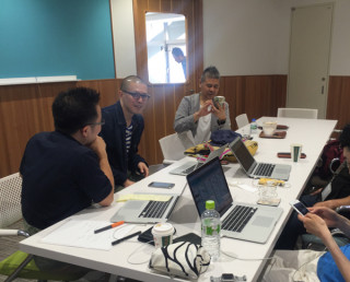 挟んだ。 編み物の三國万里子さんとおやつのなかしましほさんとこのところ続いている会議に出ようと会議室にいったら、公共スペース的会議室通称「パン屋」に 「ドコノコ」チームの男性ばかりが集まっていました。 弊社には珍しい雄々しい風景。 そして、会議がおわってドアをあけたら、 「ドコノコ」チームもまだ会議中でした。 全員が携帯を片手に、シュッシュッとしていました。 なかしまさんも 「ドコノコ」をはじめたという旨をチームにお伝えしたら、全員が 「待ってました!」という顔をしてフォローしていました。 そうそう、なかしまさんちには、ハルさんがいるのです。 (お名前はshihoで登録とのこと) 2016/06/08 19:03 |