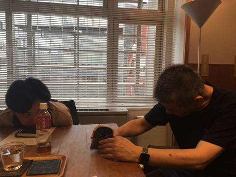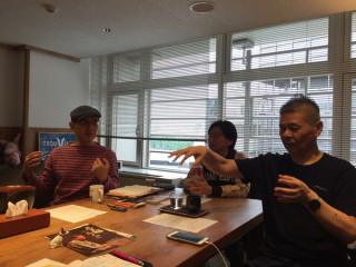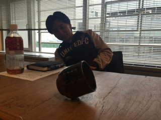 湯のみバランシング ぐいっと進んだことを確認する打ち合わせが終わり、話は今日、ページにのっていた ロックバランシングのことになりました。 「ゲームとかやるからね」 「なんでですか、できますよ!」 「いやいや、クラモチさんはリア充だから」 「いやいや、 クラモチさん(ベイスターズファン)は 筒香だから」 と不思議な方程式をあてはめていきます。 そして「重心を取る」ことを実演するために、社長が100円玉を取り出し、その上に湯のみを置いてバランスとりはじめました。 真剣です。 無言です。 みんなで見守ります。 約3分後。 できました! 湯のみバランシング! 湯のみが100円玉の上で、しっかりとバランスをとっています。 すごいわーー。 スカイプごしの (写真を撮ると真顔)にも湯のみバランシングの熱は伝わっています、きっと。 すごかったー。 できる気がしない。 (わたしは、やっている人に 話しかけるばかりで 向いていない人と言われました。 そのとおりだと思います) 2016/06/09 17:49 |