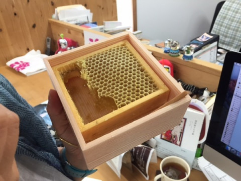 がお弁当のような何かを立ったまま食べていたので、何かと思ったら、蜂蜜を巣ごと食べてました。