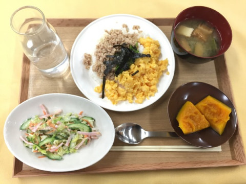 今日は給食の日で、メインメニューは「三色丼」でした。