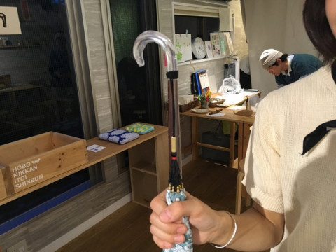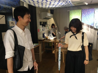 今日もオープンしています。 TOBICHI2で開催中の、 『イイダ傘店の 「あじさい」と「スクランブル」のお店』。 (いまのお店の様子は、こちらから。) 初日に、イイダ傘店のスタッフさんに紛れて、わたしも接客をしました。 といっても、どの手元にするか悩んでいるお客さんと、 「これもいいですね、こっちもいいですねー」と混乱させるだけ‥‥ ほかのお客さんが少ない時間だったので、気になる手元を全部つけてみて、みんなで「せーの!」で指差してみたりして、最後は「くちばし」という先端が透明の素材になったものを選ばれました。 お話を聞いてみると、誕生日プレゼントとして彼に買ってもらうんだそうです。 いいですねー。 ながーくつかってくださいね。 先ほど、折り畳み傘は完売してしまったのですが、長傘はまだございます。 イイダ傘店のかたが在廊して、どんなサイズ、どんな手元がいいか相談にのってくれますよ。 むしむし暑い日ですが、ハンカチやコースターなどイイダ傘店のグッズもございますので、ぜひTOBICHIにあそびにいらしてください! 2016/06/25 13:16 |
