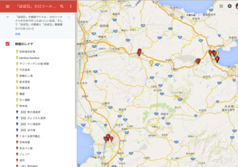 地図もよろしく! 土曜日にめでたく終了しました 「カロリーメイツ九州温泉の旅」、いかがでしたでしょうか〜。 ず〜〜っとおいしそうでした。 テキスト中継がある日は、自分の仕事の合間にすごい勢いでページをリロードしてしまいます。 さて、今回カロリーメイツが立ち寄った場所、おいしくいただいた場所などをまたまた、グーグルマップにしておきました。 どうぞ、ご利用くださいね。 「ほぼ日」カロリーメイツの九州マップ その他、 「ほぼ日」カロリーメイツの台湾マップ 「ほぼ日」カロリーメイツの金沢マップ 「ほぼ日」カロリーメイツのシンガポールマップ もありますよ。 このマップがあれば、おいしいものに出会えますよ〜! 2016/06/27 15:31 |