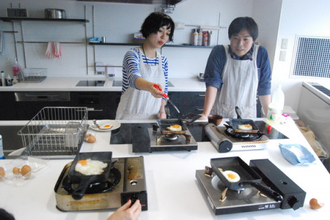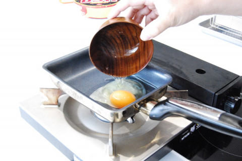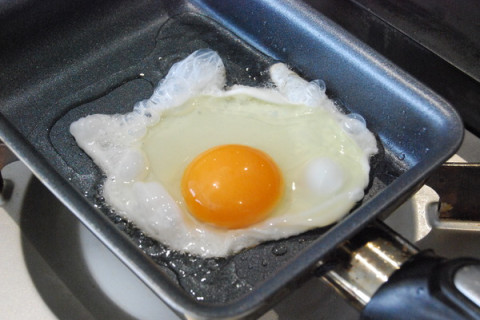 ツレヅレハナコさんの目玉焼き2 塾チームでの目玉焼き作り、まずはレシピをよーく読むところからはじめます。 「小さめのフライパンに、大さじ1の油」 と書かれていたのですが、会社には大きめのフライパンしかないので卵焼き器で代用しました。 さあて、フライパンをよく温めて、いざ、卵を投入! ジュワ〜!ジュクジュクジュク…いつもより多めの油の中で、白身がぷくぷくと泡立ちます。 「わあ、すでにいつもと違うかもー!」 「これがコンテンツに書いてあった “立体感”かなあ?!」 (卵を割り入れただけなのに、 たいへんに盛り上がる我々) 途中、コンテンツの画像を見ながら焼き具合を確認です。 「もういいんじゃないですか?」 「いや、もうちょっとだよ。」 早く食べたくて気が急いているけれど、ここは我慢我慢。 ジュクジュクジュクジュク…パチンッ(油がはねる音 )! ジュクジュクジュクジュク… カップ焼きそばの用意も同時進行です。 <つぎで最後> 2016/06/30 15:20 |