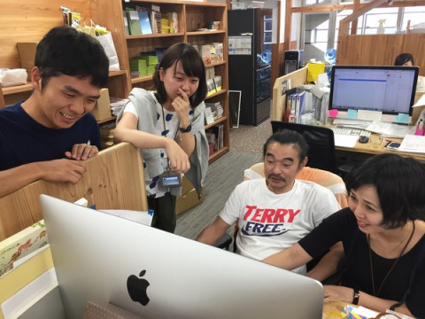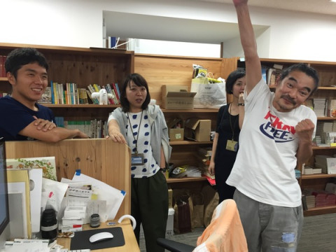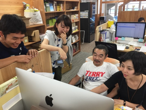 一体感。 「今日、ほんとヤバイと思ってたから 早朝から出てきてがんばったんだよ。 でもここがうまくいかなくて‥‥」 「これは大丈夫ですよ、 ここをこうやれば」 「あ、あと、こうしたら もうできるんじゃないですか」 「あれ、もうできちゃった!! 行けるじゃん!!」 なんと、うつくしいサポート体制。 そして明日のページづくりを無事に終えたヒロセさんはこのガッツポーズです。 なんでがんばっていたかというと今日はページ作りでなにかと、なにかと頼りにしていた pondさんもぎりぎりまで仕事が詰まっている様子ですが、いままでほんとーにお世話になりました! 気持よく仕事をおえて送別会に向かってくださいねー。 2016/06/30 18:00 |
