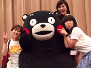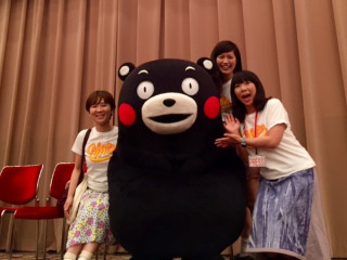 私たちカロリーメイツ、くまモン先輩と写真を撮っていただきました。