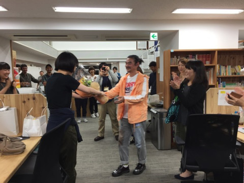ポンさんの門出 フロントエンドエンジニアの 思い返せば、ポンさんはさまざまなページのコーディング担当として、いつでも私たちを全力で助けてくれました。 (思い出写真 上から2枚目) 「ドコノコ.JP」のページ公開前に、デザイナー この写真は、公開前日のもの。 呼びかけると、よれよれの状態で手だけをまっすぐに挙げてくれました。 (思い出写真 上から3枚目) ときどきおこなわれていた桃の会 (※桃を食べて元気をだそうという会)ではしゃぐポンさん。 (思い出写真 上から4枚目) 弊社の目の前で開催されていた 「郡上おどり」でおどるポンさん。 みんなから頼られ、愛されていたポンさん。 お別れは本当にさみしいです。 人事の 「みなさん〜〜! ポンさんは今日が最終日です!」と呼びかけ、みんなが、ううう、という表情で集まってきた、その直後です。 「でも、ポンさんは、 明日も来るそうです〜〜!!」 一同、なんじゃそりゃ、とずっこけました。 (荷物の整理などがまだ残っているそうです) いやしかし、形としては今日が最後。 お世話になったポンさんに花束を渡して、みんなでエレベーターホールまで見送ります。 今日は、これからデザイナーみんなでポンさんの送別会をするそうです。 これまでありがとう、ポンさん! 新しい世界でもがんばってくださいねー。 でもとりあえずは、また明日会いましょう。 2016/06/30 21:31 |