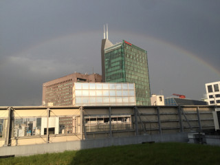豪雨ののち、太陽が再びもどりまして、虹でございました。