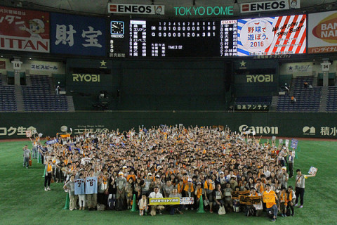 野球で遊ぼう、無事終了! 東京ドームにみんなで集まってプロ野球観戦をとことんたのしむイベント、 「野球で遊ぼう。」 今年も無事に終了いたしました! 試合は3ー1でジャイアンツが勝ちましたが、結果はまあ、さておくとして、今年もたのしかったです! じつはすごくリピーターが多いこのイベント、来年もぜひ、参加してくださいね。 都合で今年来られなかったみなさん、来年開催されたら、ぜひご参加ください! 来てくださったみなさん、ほんとうにどうもありがとうございました! また、野球で遊びましょう。 2016/07/09 00:27 |
