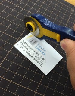 プレゼント それは先週のことでした。 恒例のシャッフルをしていたところ、 「あのですね、私の母が これをフジタさんに、ぜひと」 と言って、あるものを渡してくれました。 それはなんと、紙のうえで軽く滑らすだけで、シャーーーッと切れるカッターでした。 そして、 「家にあの便利なカッターあったでしょ、 持って行ってあげなさい」 と言ってくれたのだそうです。 なんでも恥をさらしてみるものですね、思いがけない援助の手に、私、感激しました。 ありがとうございます。 さっそく切って切って切って切りまくっています。 はじめて使いましたが、かなり便利です、これ。 一部がちゃんと切れておらず繋がっていて、 (カッターのせいではなく私のせいです) 「おかんの漬物みたいだぞ」 と突っ込まれたりもしましたが、でもそういうのは軽くピッと手で破れば解決です。 これからも愛用します。 ありがとうございます、星野さんのお母さん! 2016/07/19 13:43 |