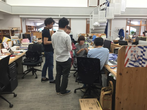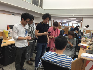 『Pokémon GO』 今日はぜったい誰かがやるだろうな‥‥と思ってたら、いましたいました、社内で『Pokémon GO』をしている人たち。 みんなで固まってプレイ中なのでやたら目立ちます。 「あ!永田さんの膝にポッポが!」 「わ、永田さん永田さん、肩の上! 上!」 「ふふふ。 (永田の足にカメラを向ける)」 「なにー? 永田さん、ポケモンのなんかなの?」 「‥‥‥」(静かにプレイ中) とにかく 永田さん、人間ポケストップ? あ、そういうことじゃない??? ‥‥とにかくいいなあ。 落ち着いたら、あとでダウンロードしようっと。 2016/07/22 16:28 |