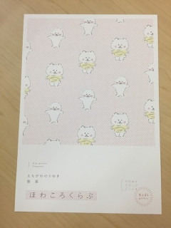 ほわほわ 夕方、 えちがわさんとは、私が4年前にえちがわさんのTシャツを着ていたのを 製作中を見たご本人が気づいてくださって、その後、出版された絵本を送ってくださったり、ほぼ日マンガ大賞に応募してくださったり、オフィスに遊びに来てくれたこともありました。 そして 「ほわころちゃん」にものすごーーーくはまっていて、ほわころ柄のiPhoneケースも買って、日々愛でていました。 そんな 絵もかわいいし、添えられている言葉も、4コママンガもかわいい。 ああ、なんてかわいいんだろう、なんて癒されるんだろう、とただただ、悶絶する私たち。 グッズをいろいろ買ってしまいました。 わりとクールで冷静な 今日はえちがわさんご本人もいらっしゃいましたよ。 (写真3枚目、ほわころちゃんで隠れていますが、ご本人です。) えちがわさんは、「ドコノコ」にも、日々、かわいい絵を投稿してくださっています。 「ほんだな」の「おすすめブック」にも入っているので、ドコノコユーザーのかた、ぜひチェックしてみてください。 オフィスに戻ったら、えちがわさんのグッズを見た 「きゃーっ! かわいい! この子、うちの、かいちゃんみたい」 (かいちゃんは、 と言っていました。 個展の情報は以下です。 えちがわのりゆき個展「ほわころくらぶ」 会期 : 2016年7月22日(金)- 7月31日(日) 場所:渋谷Nidi gallery OPEN : 12:00 - 20:00 休廊日:7月27日(水) ぜひぜひ行って、ほわほわしてきてくださいね〜。 2016/07/22 20:47 |