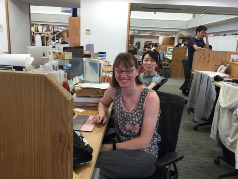 リンジーがやってきた ほぼ日手帳チームの一員として、アメリカからリンジーが来てくれました。 リンジーは「Hobonichi Planner」の フェイスブックページの運営もしています。 リンジーは以前も「ほぼ日」の事務所に通ってくれていたことがあるのですが、それはもう 3年前のことなんですって。 あれからそんなに時間が経っていたのか! ていうか、リンジーは毎年夏に来てると思ってたよ。 はじめて会う乗組員もいるので、近くの席の人たちが自己紹介していました。 これが奥野です、これが木下です、林です、茂木です、釣木です、銀色のトリはシジュです‥‥。 そうです、シジュちゃんは見習いなのに調子に乗って自己紹介をしてしまいました。 みんなが、 「急にごめんね、こういうトリが いるんです、びっくりしないでね」 と告げたところ 「もうびっくりしています」 と、リンジーは言っていました。 秋のはじめくらいまでリンジーは東京の「ほぼ日」にいるんですって。 うれしいな。 2016/08/04 18:49 |