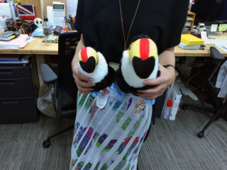 陽気な杉本 向こうのほうから杉本が、鳥を2体かかえて、踊るようにしてやってきました。 「見てください、ほら! ほら!」 それはあれですね。 明日から本格的にはじまる あの企画用の、とくに意味のない飾り付けですね。 「そうなんですよ、ブラジルの鳥です。 しかもわたしこれ、どこで買ったと思いますか? ‥‥アマゾンです。ふっふっふ」 はぁ、アマゾンで、ブラジルの鳥を‥‥。 2体のぬいぐるみを持ってポージングをする陽気な杉本に、入社したばかりのナカガミも、苦笑中。 たのしそうでいーね。 そして明日から、たのしみだね。 「あっはっは、そうなんですー」 ================ ちなみに、あとで聞いたところによると、杉本がこのぬいぐるみを持って歩き回っていたところ、 「それ、何ていう鳥?」 「"オオハシ"です」 「苗字か‥‥」 というやりとりがあったそうです。 ‥‥なんだそれ。 2016/08/05 15:39 |