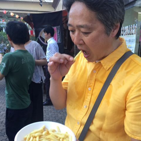 は、うまい。 それは昨日のこと。 暑〜い1日の東京でしたが、 白金商店街でおこなわれている 「四の橋 夏まつり」に行ってきました。 お目当てはイタリア料理店 「ロッツォシチリア」の食べ物屋台。 「カレーの恩返し」を使ったポテトをお祭りで出されるということで行ってきたのでした。 どんどんすすむ! カラッと揚がってて、塩気もちょうどよくって、ザ・夏まつりのおつまみ、という印象。 店長の阿部さんは 「カレーの恩返し、自分でも愛用していて、大好きなんですよ」 と言ってくださったのですが、たしかに、好きな人だからこそというか、ポテンシャルを存分に引き出してもらっている気がしました。 (ふつうのポテトに見えますが、すごーーくおいしいんですよ) いやはや、さすが。 夏の家でのおつまみに、これ、作れたらいいなあ‥‥。 まったく同じものとはいかなくても、ちょっと試してみようかな‥‥。 阿部さん、ロッツォシチリアのみなさん、ありがとうございました! 2016/08/08 11:47 |