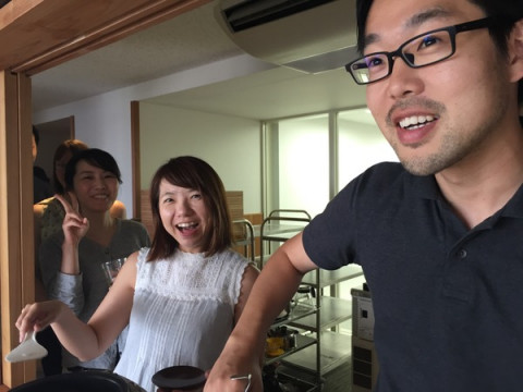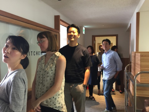 「食べていいですよ〜」と声がかかりましたら、オフィスの隅々からどんどん人が集まってきまして、列をつくっています。