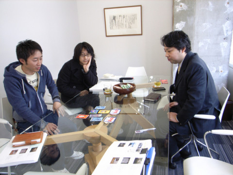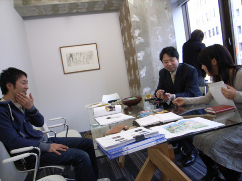 あけまして! 凸版印刷の藤井さんが2009年初のご来社! 富山のご実家に帰られてたそうで、とやまのくすりをお土産にもってきてくださいました。 いまも販売している、富山のこのレトロなグラフィックの袋。 みんなで、わけわけいたしました。 で、この部屋では、4冊の書籍の相談が同時進行のような順次ご相談のような状態でございます。 なにせ、ブックデザインをプリグラフィックスの清水さんにお願いしている本が3冊ございまして。 そして、それとかぶって、 皆一緒にしちゃったらいいんじゃないか? ということで、打ち合わせ中でございます。 2009/01/08 22:07 |