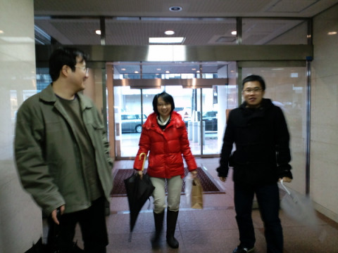 ビルの出口で宇宙部