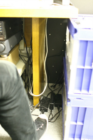 ほうじょう君の工作 先ほど、ほうじょうくんが作っていた工作。 昼食から帰って来たらできてました。 「通気口から、 冷たいが風が吹いてくるので、 足下が寒いんですよ〜」 と言っているのを聞いて、 「板はって風が入らないように すればいいじゃん!」 「でも、そんなの作れないですよ〜」 「できるできる。 とりあえず、やってみろ!」 と言ってお昼に出かけたのでした。 うんうん。 なかなかいいじゃない〜。 やりきった男 ちなみに、隙間を塞ぐために使った黒いボードは、先日のトリプル・フグカメラの宇宙の部分をリサイクルしました。 工作ってたのし〜ねぇ〜! 2009/01/09 15:32 |