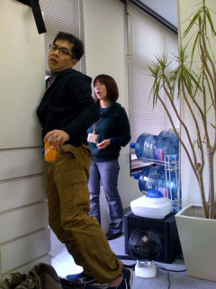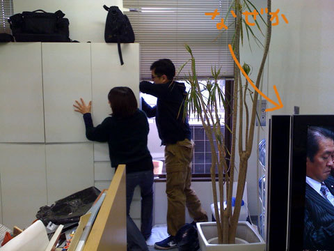 おとうさんも参戦! 前の 「そんなに暑いならさ、 開ければいいじゃ〜ん」 と軽い気持ちで、持っていたカメラを地面に置いてまで開けようとするスガノ。 ふふふ。お気持ちはありがたいけどね、それはね、もう、やったんだよ。 そんな軽い気持ちでやったら、火傷するよ。 カツン!になっちゃうから。 だめだめ。 カツン!きちゃうよ。 あのね、この島のひとたちと、どうにかこの窓を開けたくて試したんだよ。 そしたら、窓の鍵になっているレバーが、ちょうど棚の背中にある、添え木(?)に、カツン! 何度やっても、カツン! カツン!から逃れるには、この重い棚を、少しずらさなきゃならないのだもの。 そんなメッセージも聞かず、力任せに、「ほぼ日のおかあさん」スガノは窓を開けようとします。 近くにいた (「ほぼ日のおとうさん」)も参戦。 テレビからはなぜか、国会中継‥‥? なんで? うんしょっ! うんしょっ! ガタンっ! (つづく) 2009/01/20 11:38 |