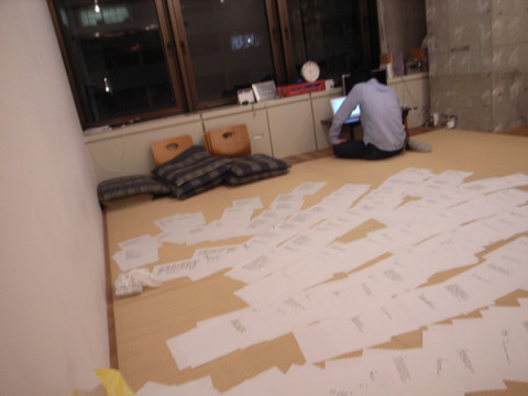 『ブイヨンの気持ち。』の次は。 ただいま、『ブイヨンの気持ち。』のほうは、本文を入稿し、出校をまっているところ。 そして、明日は表紙とカバーの入稿なのです。 編集担当の というか、殆どないのです。 というか、ないのです。 そんなおりにすることといえば、“小さい言葉”シリーズの第3弾の編集なのであります。 ぴーこーぴーこー! 紙切れかな‥‥。 そばにいた で、そのプリントアウトは、和室にもちこまれ、これから、並び替えをするところです。 なるほど。 2009/01/21 23:16 |