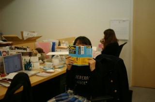 フロアの奥のほうでわざとらしく読書中な人がいます。