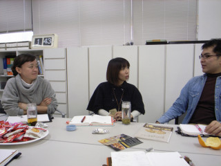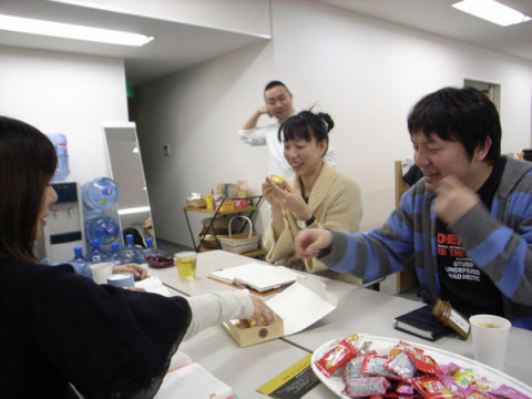 おやつ部 発足。 かつて、 「今日のダーリン」でこのようなことを書いたのです。 ・「おやつ」ということばが、 なんかずいぶん心地よい響きだなぁと思いまして。 道を歩きながら「おやつ」と頭のなかで発音して、 にやにやしそうになりました。 「おやつ」と、目を閉じてつぶやいてみてください。 ほら、「おやつ」。 じわ〜っと、幸福な気分になりませんか。 なるなるなる! ということであつまったのが、 「ほぼ日おやつ部」です。 なにをどうするのかは、すんごくよくわからないけど、ともかく、集まりました。 「おやつ部」なんだからおやつが必要だろうということで、おやつをかってきました。 もぐもぐたべながら、 「顧問は とか、 「じつは、べいちゃんの チーズケーキはおいしい」 とか 「飴をつくったことは ありますか?」 だの、おやつにまつわるいろいろをがはがはと話したのです。 通りすがりの さて、どういう形しようかねえ。 「おやつ部」。 2009/01/27 19:40 |