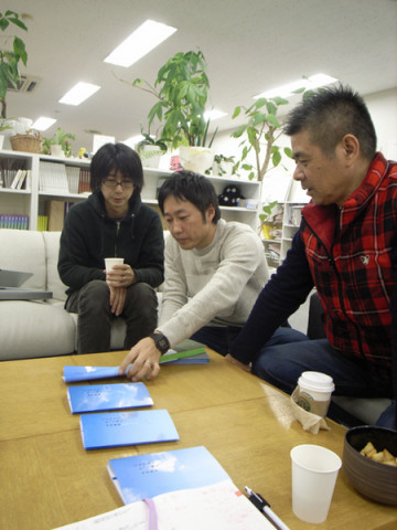 良かったの図。 【それはきのうのことじゃった】 「きまぐれカメら」にもでておりますが、 「小さいことば」シリーズの第3弾の『ともだちがやって来た。』の表紙がきまりました。 ブックデザイン担当のプリグラフィックスの清水さんがいくつかのパターンを持ってきてくれました。 しかし、デザイナー、編集者、著者で意見がばりんばりんに割れたのです。 そこで、その時間に社内にいた乗組員達に即席アンケートをとりました。 その結果を参考にしつつ、話しあって、結論をだしました。 『ともだちがやって来た。』も『ブイヨンの気持ち。』も3月10日に販売を開始する予定です。 2009/01/30 15:46 |