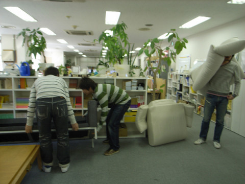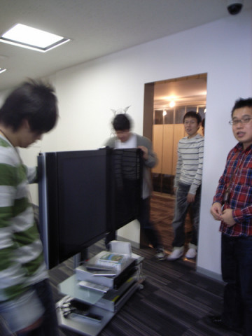金曜日の「どうぶつの森」の製作者のみなさんとの座談会は、弊社でっかい会議室に、ソファーとテレビをもちこんでおこなわれたのでした。