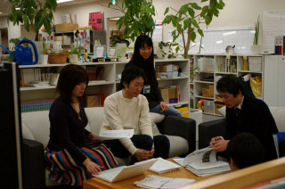 としたミーティングがフグカメラ前のソファで執り行われています。