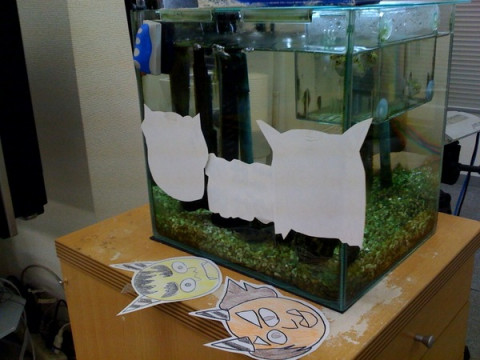 みなさま、今日のフグカメラはご覧になりましたでしょうか? なぜか今年に思い出された「鬼」が、貼付けられているのが見えると思います。 青鬼は自信作だそうですよ。 水槽の面積の都合上、全員(4人)を貼れないようなのですが、2人分、待機状態の「鬼」がいて、そのオレンジが特に、やばいです。 なぜか、風に吹かれています‥‥わたしも言えた立場じゃありませんが、ものすごいものがあります。 今週の「ほぼ日」トップページには、画伯・わたくしによる節分にちなんだ、日替わり7コマ「鬼と春のたわむれ」が描かれていますよ〜〜。 2009/02/03 16:33 |