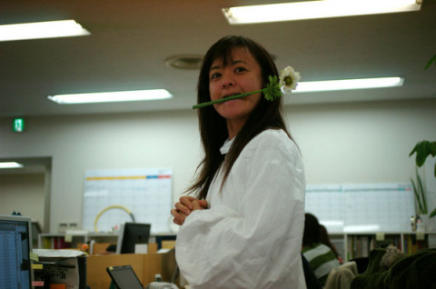 寝違えまして 「寒かったせいなのか、 季節の変わり目なのか、 寝違えまして首が痛い」 と、変な姿勢で出社していました。 話すときもファハハハハ、と笑うときも同じ姿勢で微動だにせず、違う生きものみたいで少々怖かった。 帰りに 「接骨院に行ってきます〜」 と言っておりましたのですが、 (1枚目の写真) 本日のようすは、どうなのでしょうか。 見てください、みなさん、この復活を! (2枚目以降の写真) 調子に乗ってお花をくわえてみました。 オーーーレッ! せっこつ、ビバ! 季節の変わり目、アデュー! 2009/02/05 11:34 |