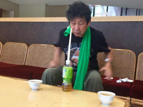 引き続き横尾合宿 河口湖にいる横尾忠則さんの合宿班です。 昼食後は 「なにかの上に、なにかを立てる」 のカリキュラムをこなしています。 ちなみに横尾さんの得意技は 「たまご立て(最高6個)」 「ハエつかみ(ふわっとつかまえる)」 です。 口からアマガエルを出したこともあるそうです。 糸井は 「紙でも葉っぱでも、 口笛にして鳴らす」 です。 横尾さんは、ペットボトルの蓋の上に割り箸の尖った部分をつけて立たせるのに挑戦中です。 難易度がものすごく高いと思います。 こうやって、時間が過ぎていく。 そんな一日です。 2016/08/19 17:53 |
