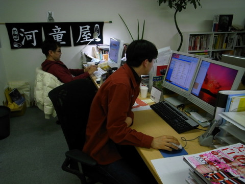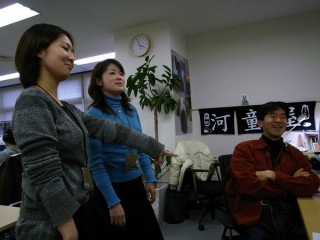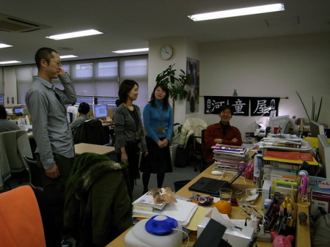 お隣りさんバトル。 お隣りの だいたいの場合、ヤマネさんがおこられてます。 だいたいの場合、ヤマネさんは笑っています。 だいたいの場合、クムラさんとタナカさんはとってもかわいい声を出していますがちょっとおこっていることが伝わってきます。 今日はとうとうこのチームのおにいさん でもですね、だいたいの場合、みんなおこりながら笑ってしまっています。 関係ない人も、いっしょに笑ってしまいます。 なんだか平和なバトルなんです。 そしてみんなが帰った後、ヤマネさんはまじめな顔でパソコンに向かってました。 がんばれー! 2009/02/13 14:00 |