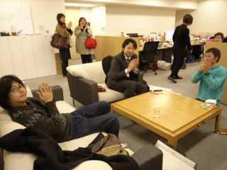 校了の日 今晩は『ブイヨンの気持ち。』の校了と『ともだちがやって来た。』の初校戻しの日なのです。 校了やら戻し作業をしてる場所には、 おかしな質問やら、おかしな創作小唄、えんかいから帰ってきたスガノさんとのおかしなトークやらの集中砲火をあびながら、我々は作業を続けるのです。 お客様である、凸版の藤井さんや、プリグラフィックスの清水さんは、おかしなテンションの社長にどのような対応をしていいか、さっぱりわからず困惑をしております。 そうです、やっぱり、 「あっさり」本はできないのです。 そして、12時を回るちょっと前に、我々は作業を終了し、多少幸せな気分で写真をとりました(※)。 ※この3枚目の写真を撮影した直後、 我々は、3つばかりの落とし穴に 連続してはまりこみました。 (3つとも脱出できましたが) 昨日の清水さんの不安は 的中したことも報告しておきます。 ああ、落とし穴はこれで 全部でありますように。 2009/02/14 01:18 |