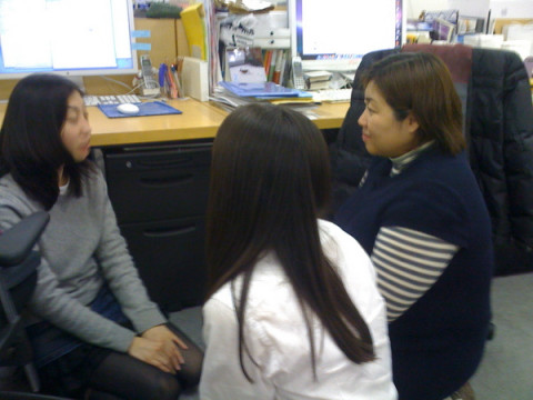 2705? じぶんの席で仕事をしていたらうしろから あら、なにやら床会議のようです。 ん?モギさん?ちょっとちょっと! スニーカーの底に黄色の「ふせん」が付いてますよ。 しかも、なにかの番号が見えます。 バイク便の問い合わせ番号。」 ワァオ。この、さらっと返せる答え方! これが、進行のモギさんです。 3月10日に発売予定の書籍『ブイヨンの気持ち。』と『ともだちがやってきた。』の原稿も進行担当モギさんの靴のウラにていろんな「フセン」が貼られたり、はがれたりしつつ。。 そうやって本ができあがるのです。 発売まで、あと3週間となりました。 どうぞたのしみに待っててくださいね。 2009/02/17 23:02 |