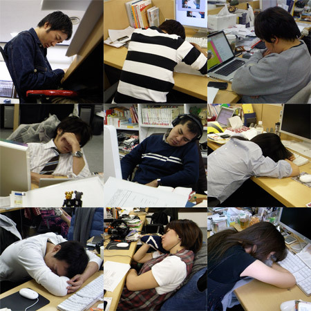 今日の昼下がりに、空気を入れ替えようと窓をあけた瞬間、努力魔が天から降りた。 ものの本に曰く、この努力魔とは、通常、二十四節気の啓蟄前後に空から室内に侵入し、そこにいる全ての生けるものに努力をさせる魔物のことである。 どうやら今年は、季節の巡りがはやいようで、啓蟄よりも少々はやい降臨であった。 ただ、ごくまれに、この努力魔の力が及ばない人物が生まれるとされている。 それが、きっとこの男なのだろう。 そして、この男もまた、伝説の一つになるだろう。 ※弊社では「睡眠」にまつわる言葉は 伝統的に「努力」と言い換える。 ※現在「ウソの『ただいま製作中!』」を お送りしています。 詳しくはこちらをご覧ください。 2009/02/27 15:00 |