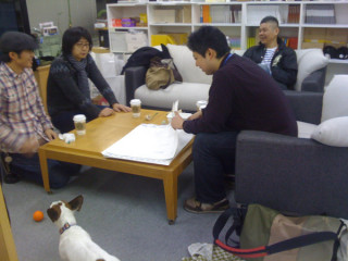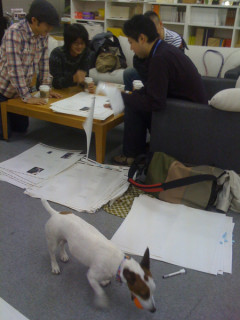 相談をやまもり。 『ともだちがやって来た。』と『ブイヨンの気持ち。』の編集班は、今日は土曜日だけど校了するものやら入稿するものがあって、会社にやってきた。 ぐうぜん、散歩途中に立ち寄った社長もやってきた。 当のブイヨンさんも超やるきまんまんで、 「ボールをなげてくれろ」と、せがむのです。 あ、あの、あのね、ブイヨンさん、わたしもね、あのね、校了のね、作業がね。 いろいろね‥‥。 はい、投げますとも! さて、そして今日は、『ともだちがやって来た。』の本文が校了したのでした! いちおう、万歳。 でも、まだちょっといろいろ残ってるから (カバーとか帯とか)、まだ三唱はできないんだけど、でも、ちょっとほっとしました。 2009/02/21 20:18 |