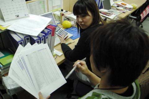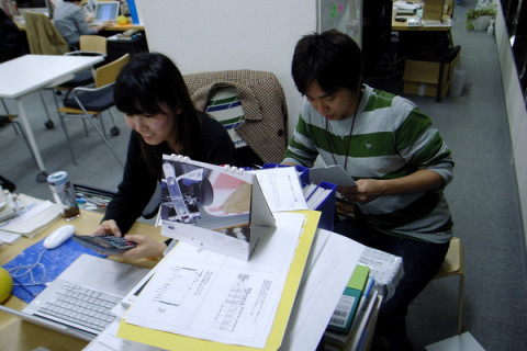 が明日一斉に販売される商品の数や値段がまちがえていないか、最後の確認をしているようです。